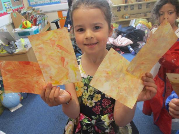 We have used nature as part of our art, taking inspiration from Andy Goldsworthy. We have explored the abstract work of Paul Klee and created our own interpretations using shape, colour and composition. Children have used science in their art, exploring the effects of dye and foam, creating some beautiful prints. We have also investigated how we can use our own stencils, applying masking tape to create negative space.